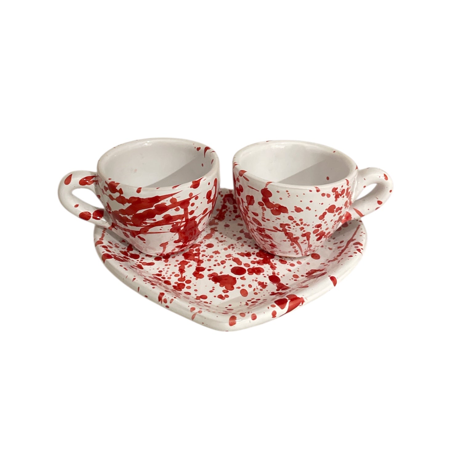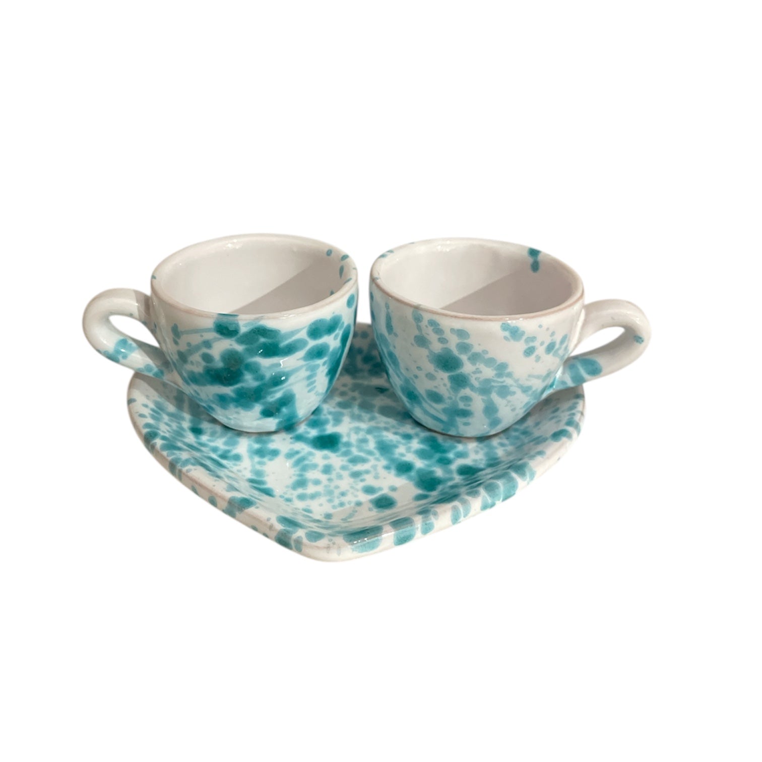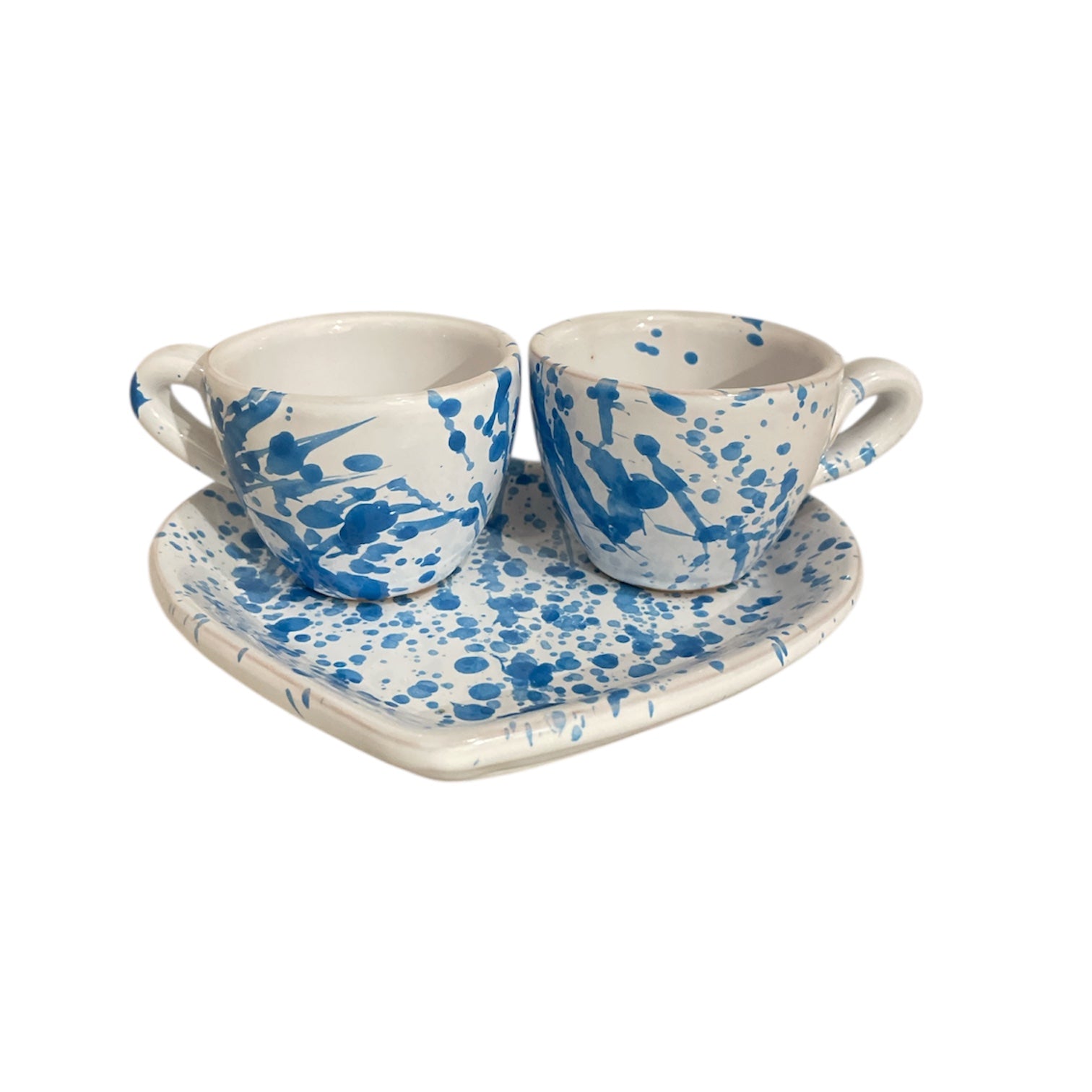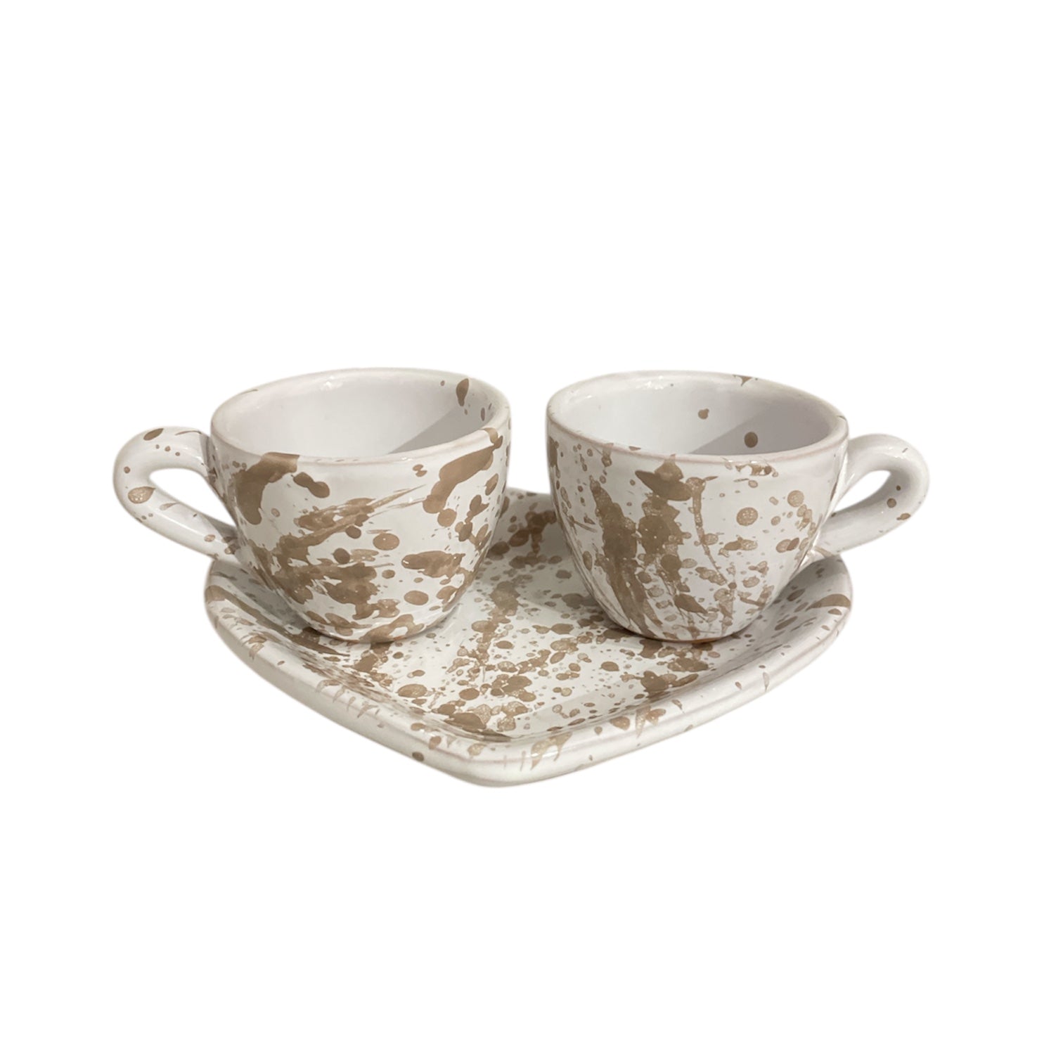 Il kit è composto da due tazzine da caffè più il piccolo vassoio a forma di cuore o rettangolare .