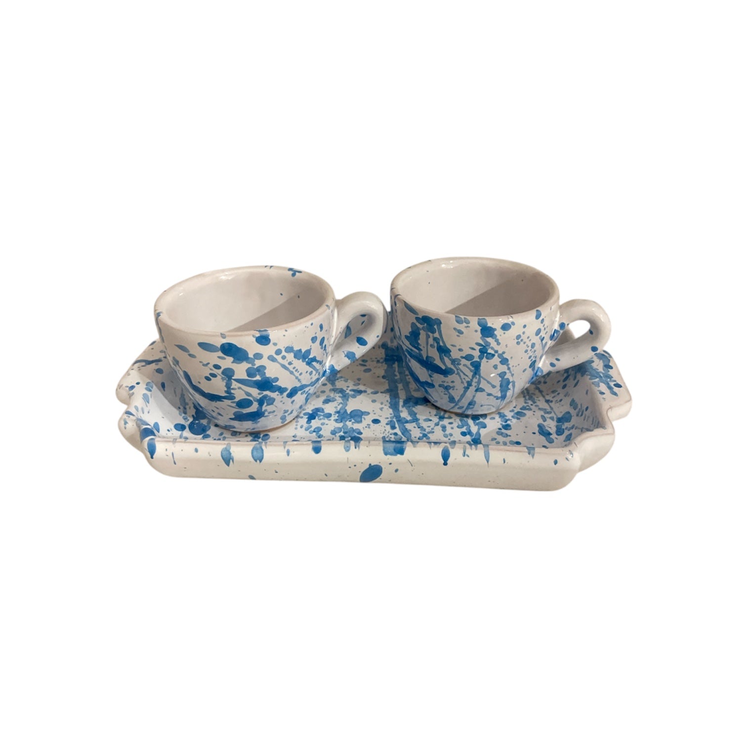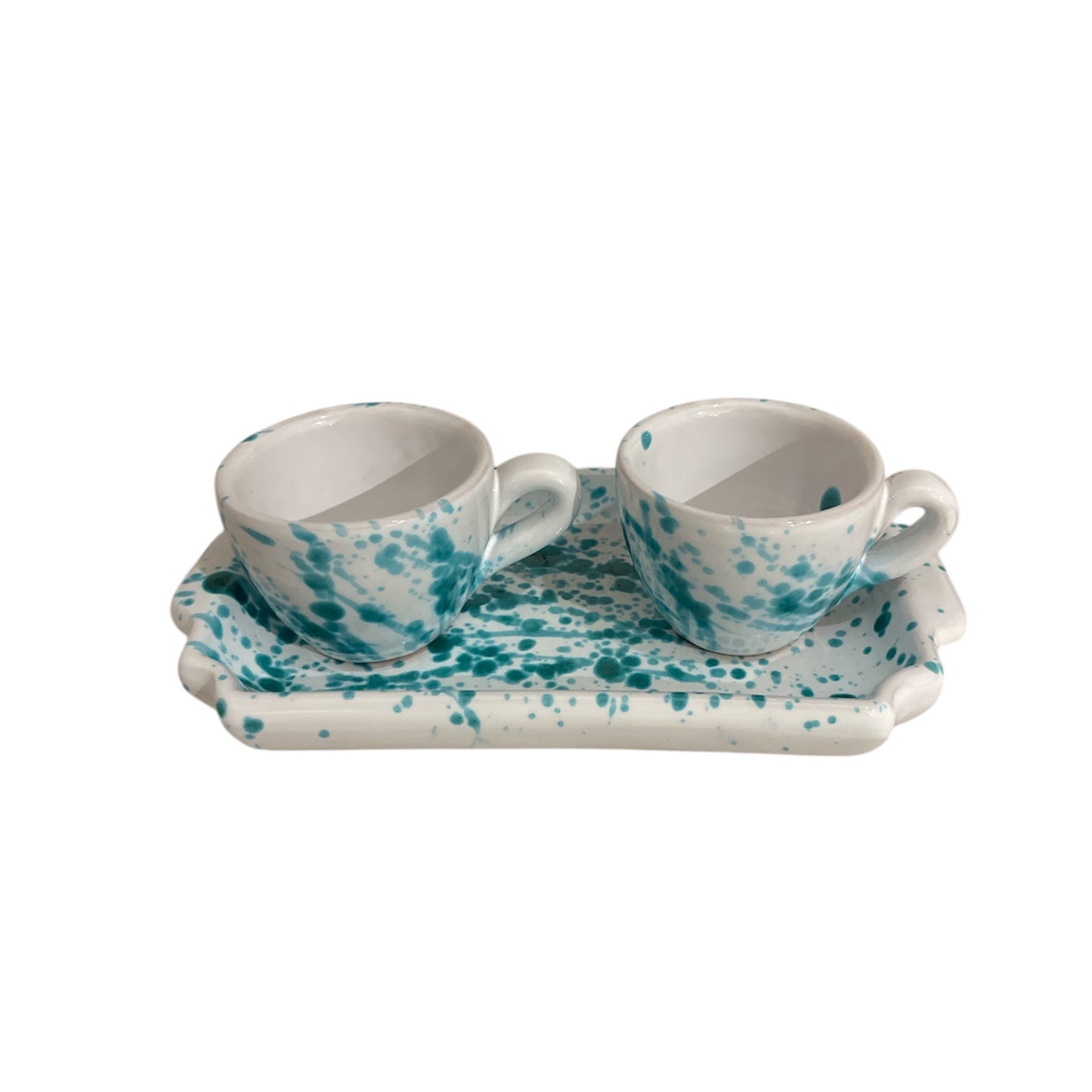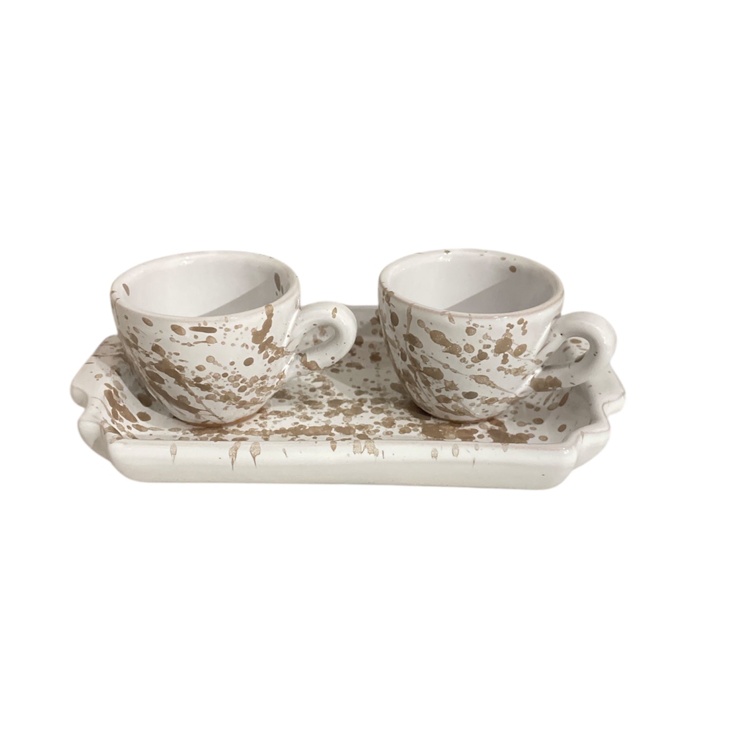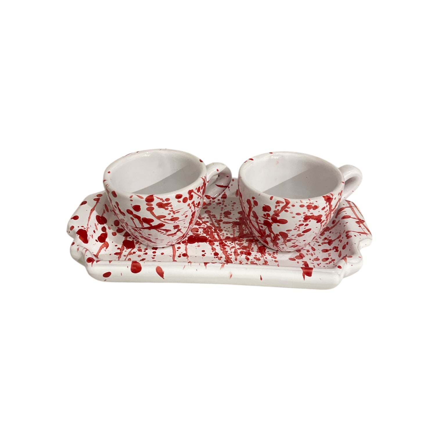 Il kit è composto da due tazzine da caffè più il piccolo vassoio a forma di cuore o rettangolare .